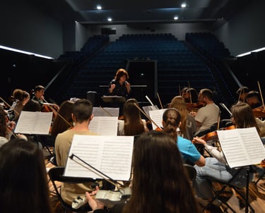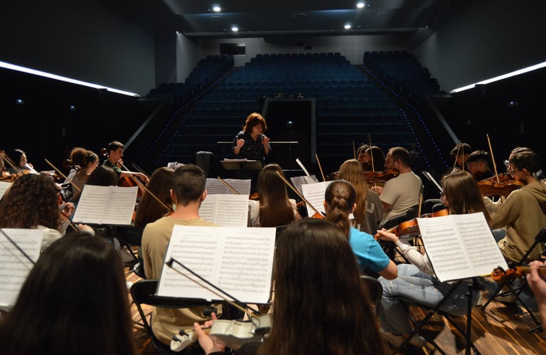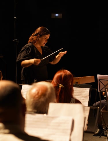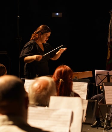Olga Clari es directora y musicóloga natural de Alzira (Valencia), con más de nueve años de experiencia liderando bandas, orquestas y coros. Su sólida formación y trayectoria la han llevado a colaborar con prestigiosas agrupaciones y festivales, compaginando su labor artística con la docencia y la divulgación musical.