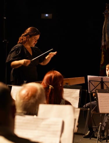 Olga Clari es directora y musicóloga natural de Alzira (Valencia), con más de nueve años de experiencia liderando bandas, orquestas y coros. Su sólida formación y trayectoria la han llevado a colaborar con prestigiosas agrupaciones y festivales, compaginando su labor artística con la docencia y la divulgación musical.