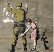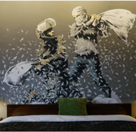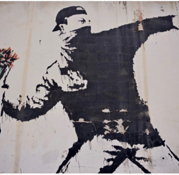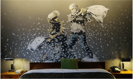 La imagen que inspira este motivo tiene un fuerte simbolismo pacifista. Se encuentra en un hotel situado en Belén, Palestina, con vistas al muro que Israel construyó alrededor de Cisjordania. En cada habitación del hotel hay una pintura que critica dicho muro. Banksy declaró a los medios que en este hotel ambas partes del conflicto son bienvenidas (BBC, 2017).