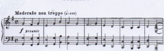 No solo se reutilizan estos elementos, sino que aparece un tema principal que guarda una estrecha relación con el tema del tercer movimiento y, por ende, con la escala octotónica 2. Aunque a primera vista pueda parecer un tema nuevo, en realidad es una variación simplificada y con un carácter más rítmico del tema precedente.