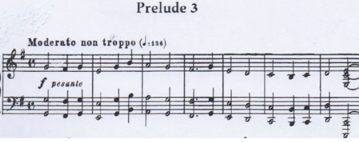 La segunda cita viene del Preludio nº 3 de Shostakóvich. Aquí, el compositor juega con las capas: mientras el tema de la fuga se insinúa, casi escondido, el preludio aparece con más claridad, antes de deformarse tímbricamente cuando lo toman las maderas.